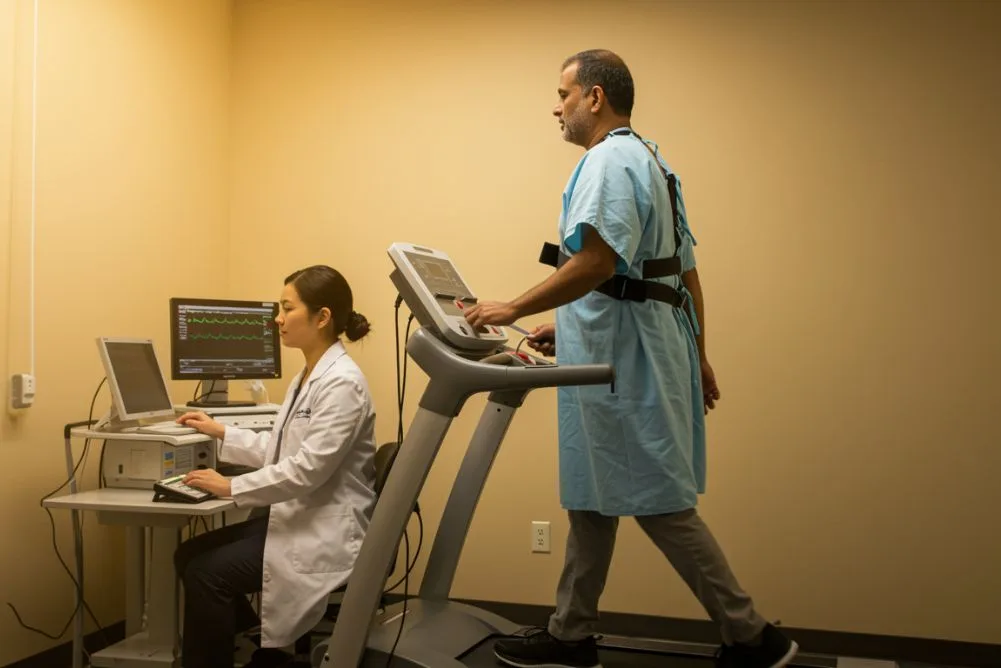 Used to evaluate heart response to physical activity — detects coronary artery disease and stress-induced heart conditions.